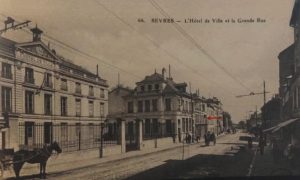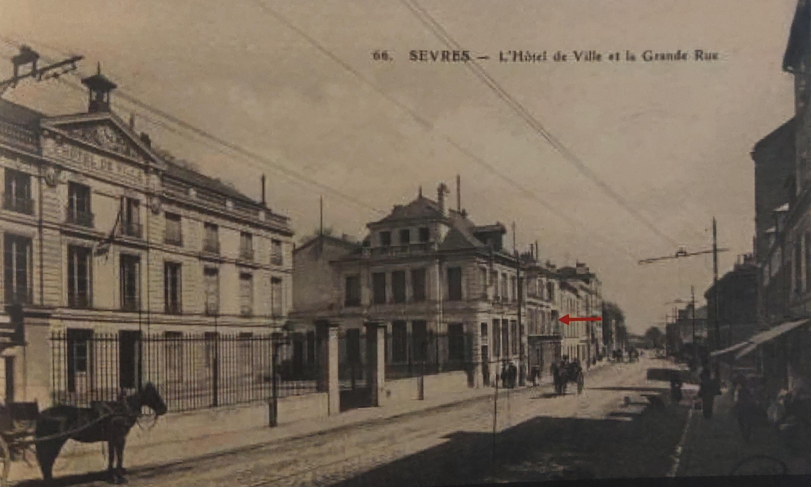 2- photo archive N°66 Ville de Sèvres – L’Hôtel de Ville et la Grande Rue (vers 1910-1920) – Flèche rouge = 50 Grande Rue